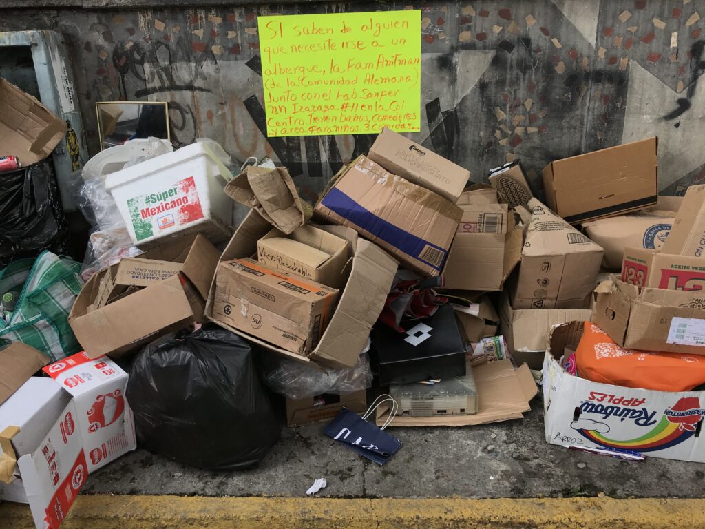 A casi un año del sismo del #19s aún hay personas pernoctando en las calles de la ciudad y al menos nueve adultos mayores han fallecido a causa de esta situación.1 Con el tiempo, nuevas afectaciones se acumulan para los damnificados de esa mañana de septiembre: despidos o abandono de su empleo por atender la emergencia, falta de ingresos por daños en su lugar de trabajo, niños y jóvenes con rezago educativo ante los daños en algunas escuelas, deterioro en la salud por falta de agua y saneamiento apropiado, o simplemente debido al estrés y la precariedad cotidianos.
